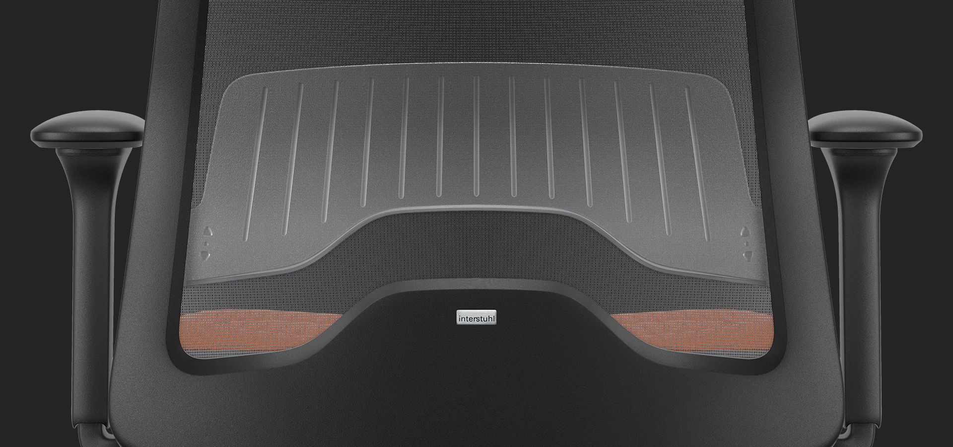 The adjustable lumbar support ensures the backrest conforms to the natural shape of the spine. The armrests are adjustable in height and width, relieving shoulders and arms.