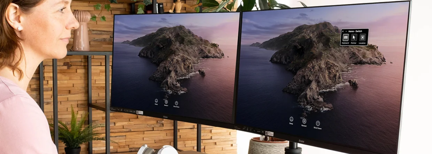 Säädettävät näytön jalustat: Saat asetettua näytön sopivasti silmien korkeudelle välttääksesi niska- ja hartiakipuja.